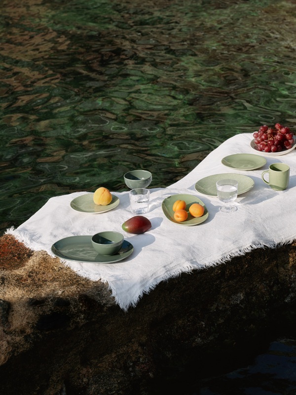 「24h アベック」グリーンは、「24h」シリーズの新⾊であるセージグリーンやエバーグリーンとも美しく調和し、⾷卓に静かな彩りとアクセントをもたらします。