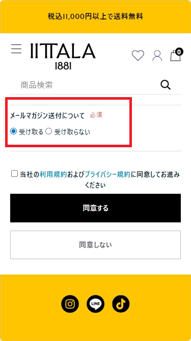 「メールマガジンを受け取る」にチェックを忘れずに入れてください。