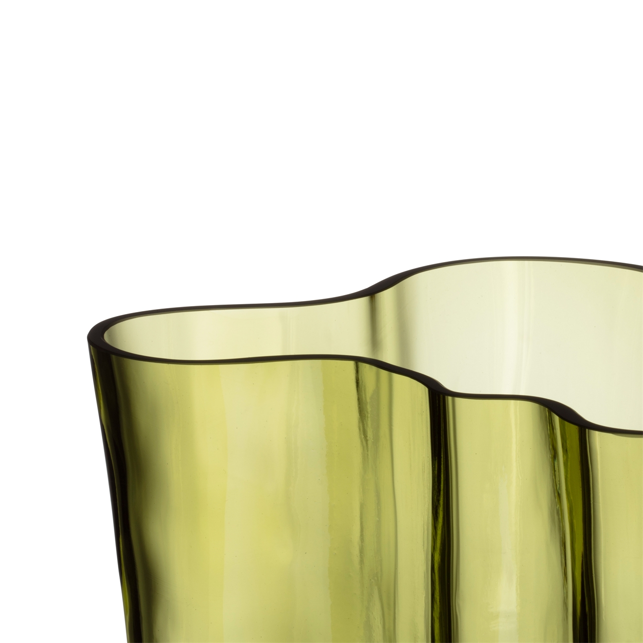 独特なグリーンは、原料に用いたフィンランドの砂に含まれる天然の鉄分がガラスの素材と反応することで生まれるナチュラルなカラー。制作時の気象条件などにより、ひとつひとつのカラーが微妙に異なります。この特別なベースにはひとつひとつシリアルナンバーが刻まれます。